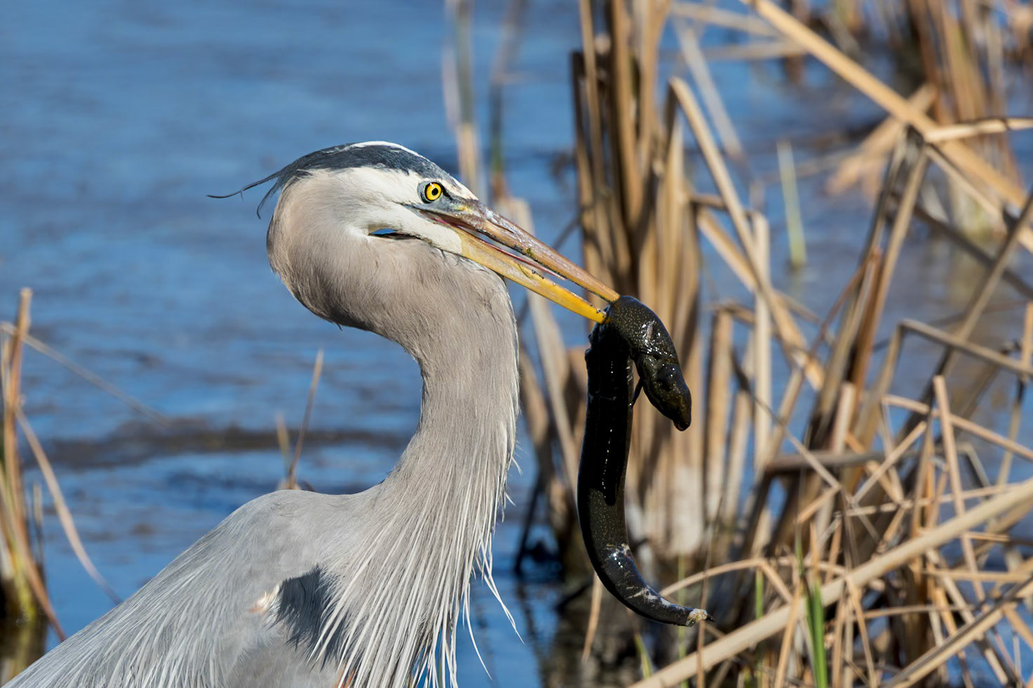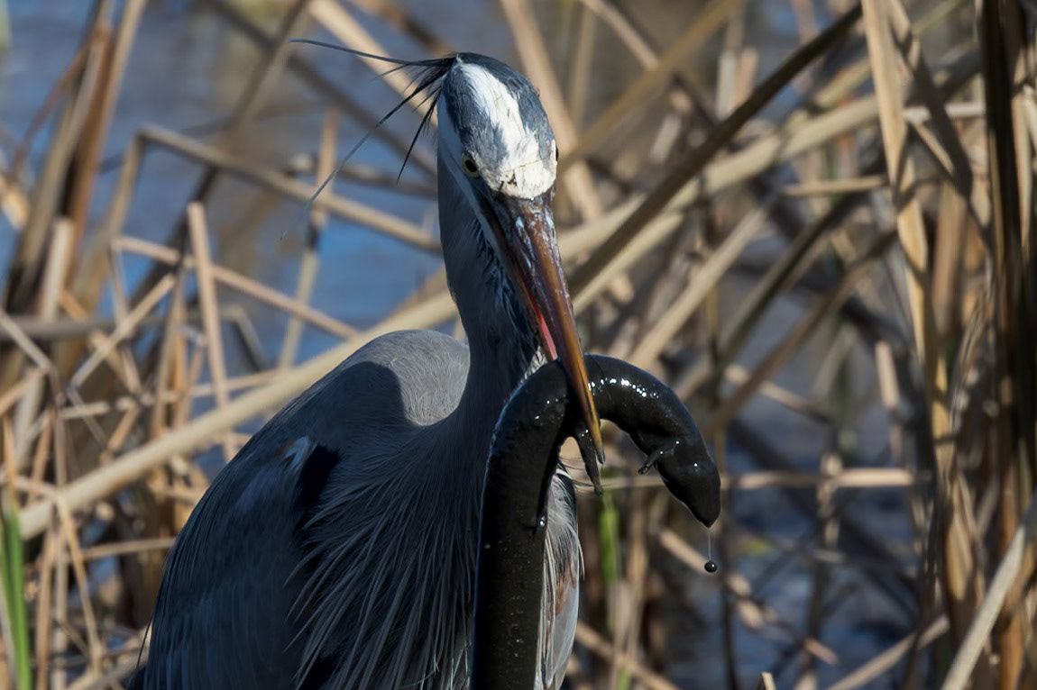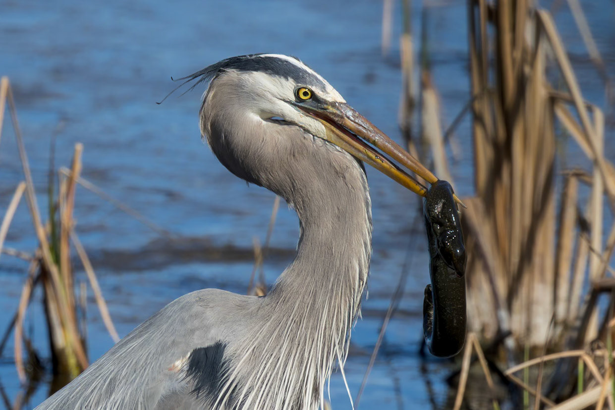 Great Blue Heron Eating Siren